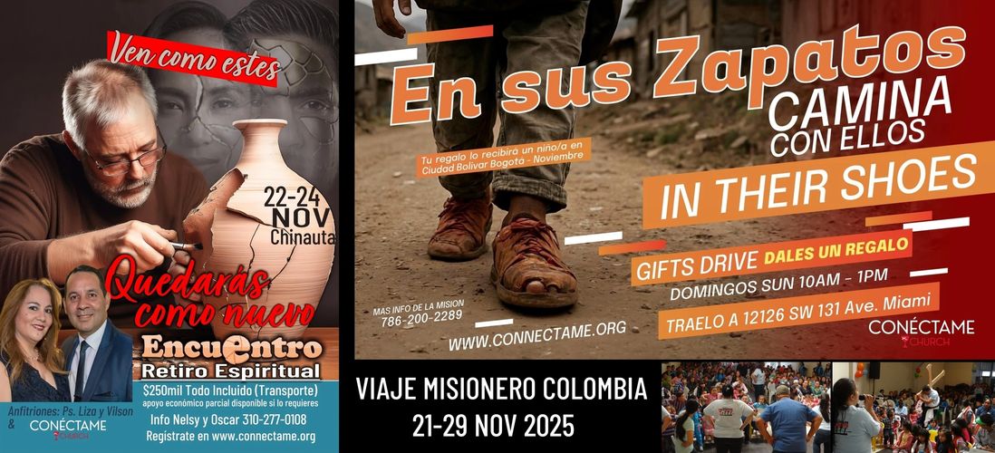 En Noviembre un grupo misionero de la Iglesia Conectame Church estara llevando a Colombia una muestra de cariño a niños/as pobres de la comunidad de Ciudad Bolivar en Bogota Colombia.